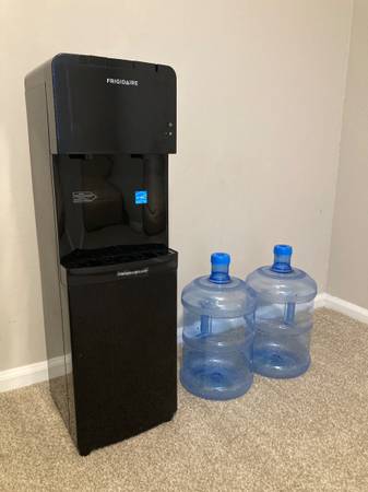Brand new water dispenser with hot and cold options. Includes two 3 gallon sized containers both brand new, one was never used. Nothing wrong with it, but we are moving so we are looking to downsize...