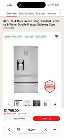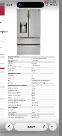 LG LMXS28626 Stainless Steel French Door Refrigerator BRAND NEW- 1 month old. Too large for my house! Purchased for $2200, asking $1750 to purchase new one. Spacious stainless steel French door...
