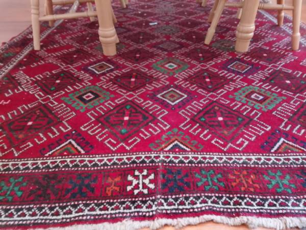 Around a hundred years old 10x7 and is in good condition, all wool, natural dyes, with tribal motifs. It's very nice looking. Quite a bargain.