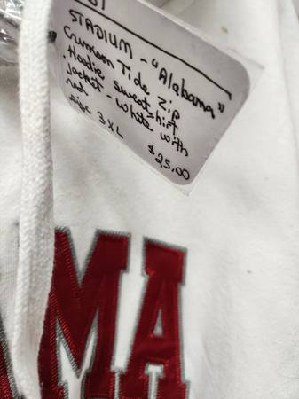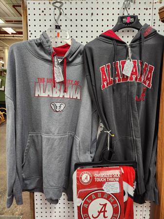 Various vintage Alabama hoodie sweatshirts and fleece jackets all 3 XL. Fleece jackets are $25.00 each. To purchase go to Joey's Thrift Mall located at 1100 Tenth Ave.
