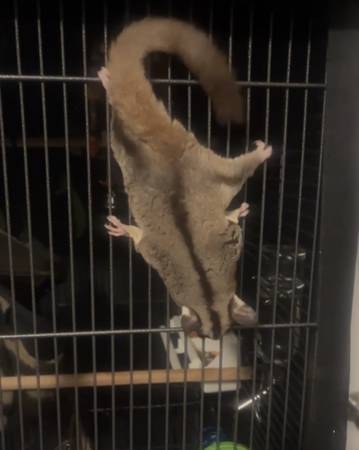 I'm reluctantly selling my large Sugar Glider cage, complete with toys, pouches, a running wheel, water bottle, and two metal feeding bowls. I'm also including food. Unfortunately, my wife is dealing with a serious illness, and I need to do everything I can to support her and cover our expenses.