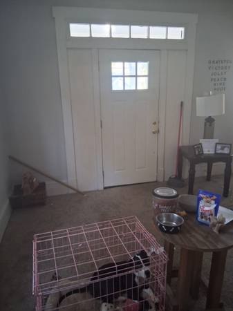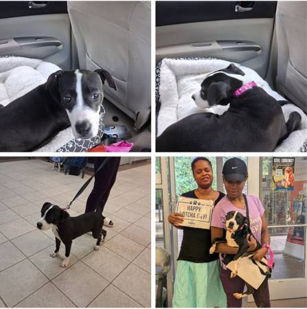 The puppy is chipped and has and its due gor one shot and she has one free vet visit at Paws. I will transfer her records, chip information etc over once the purchase is complete. The puppy will come with dog food, treats, a blue stroller, a pink dog collar and a pink leash but I suggested getting her a wire leash because she has. Chewed through 3 already. She comes with a gray over sized dog bed, a pink Kennel. No insert so you can either buy one or I use old carpet or card board boxes. She comes with a dog bowl and I use a tin can for her water so she doesn't chew through it. She comes with dog shampoo with oatmeal. Her skin is sensitive. The oatmeal helps. Pick up only.