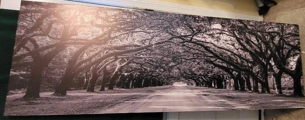 Really nice picture of some Oak trees, reminds me of Savannah area. It's a black and white picture. Measurement's are about 20" tall and 60" Wide. $40. This is a CASH SALE ONLY. NO CASH APPS....