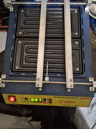 I have a hot air machine used for reflowing CPU and GPU's. A Ceramic heater and two brackets that I used for xbox 360 motherboards and ps3 motherboards. Comes with a soldering station and chip holder and two nozzels for the hot air machine. Some solder and various other tools used for chip repairs.