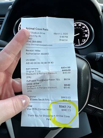 **Posted my receipt for proof in case anyone cares lol** But yeah that much not including the cage and food and his favorite treats and everythinggggggg else I’ve got the little spoiled shit since having him lol. Just like toys and things for his cage, an automatic water and food feeder, some tiny little washable diapers if he’s out a lot so he don’t poo on you lol.. Moat importantly to me anyway; I HAVE ALWAYS kept his cage clean from day 1 so it looks new. I clean it top to bottom every morning and let him play in the sink for a little bird shower once a week! What has helped tremendously for me is using puppy pads to put on the bottom of the cage or newspaper, it’s much easier to change out every day instead of dealing with that loose stuffing bs!!