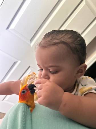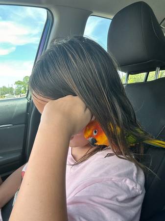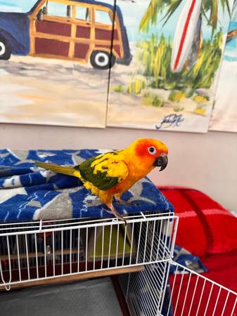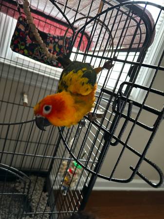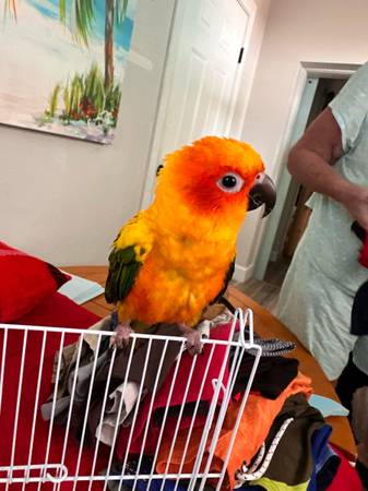 We’ve had him/her for about a year and a half now.. I along with my 12 year old daughter have grown so attached to him this is such a hard post to make 😭😭 We’re moving under unfortunate circumstances and I just can’t take him with us.. It’s seriously the most friendliest bird and lovessss attention!! I’m so sad to have to get rid of him but I want him to go to a LOVING HOME that will give him the daily attention and affection he/she needs and deserves!!! Loves to be out of his cage a lot (obviously,I think all pet birds do lol) When I got him last year they had clipped some of his wings, but I haven’t had them fully clipped bc IMO I don’t feel like that’s fair for the bird…. That’s your choice though. I have nail clippers you can also have for him, although I just trimmed them and his beak! He can fly a little bit like he’ll fly out of his cage to come be on my shoulder, which is his FAVORITE place to be. Forever. All day every day if he could lol.. but he can fly a very short distance; and if he doesn’t land on anything he just goes slowly down to the ground lol. But I gave 950 for JUST HIM!