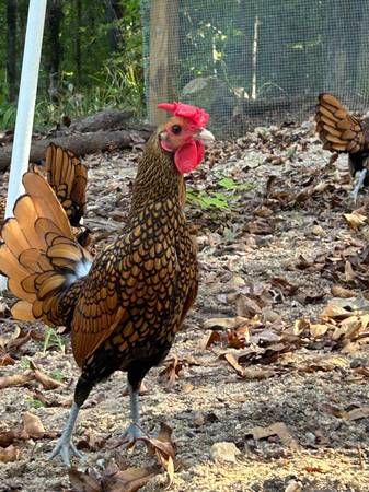We have two Golden Sebright Bantam Roosters we are looking to rehome. They are really good Roosters, do their job very well. Our flock has a large run and then free ranges when we are home. These...