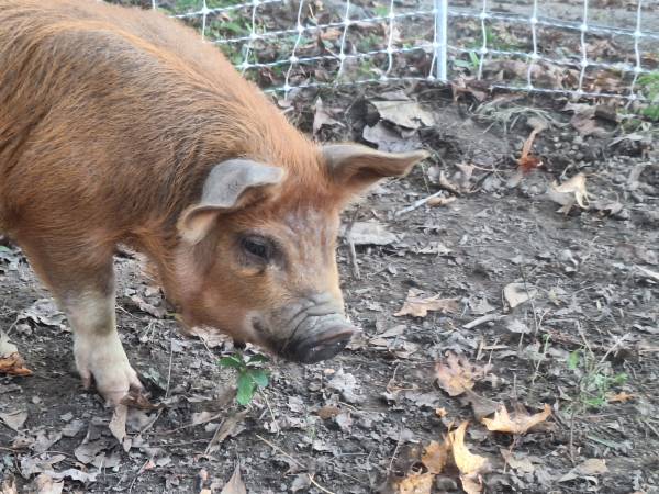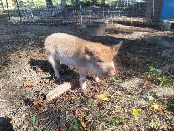 Idaho Pasture Pigs (IPPs) born 8/19/25 ready for new pastures. I have one intact breeding quality boar and one breeding quality gilt left. Both parents are registered IPPs. In Waverly Hall, GA.