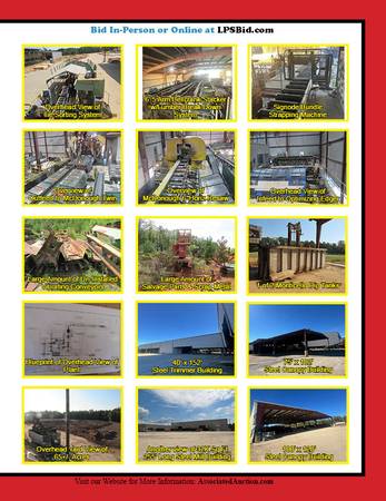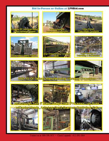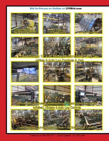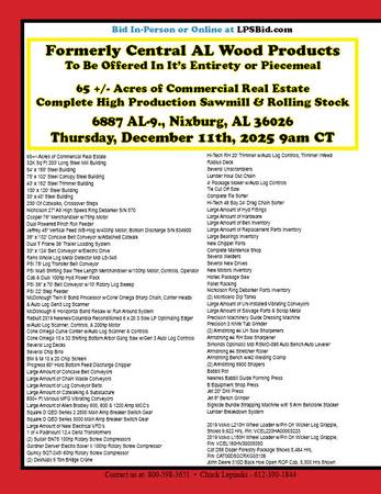 65 +/- Acres of Commercial Real Estate, Complete High Production Sawmill, Nicholson 27" Ring Debarker, Cooper Merchandising System, PSI Tree Length Multi Shifting Saw Trimmer, McDonough Sharp Chain Processor, Omega Cone OSI Curve Canter, Newnes 3 High Speed Optimizing Edger, Omega Cone 10" x 32 Bottom Arbor Gang, Tie Sorter, 600+ Ft of Vibrating Conveyor & Rolling Stock. Most Equipment Bought New or Rebuilt Prior to Installation