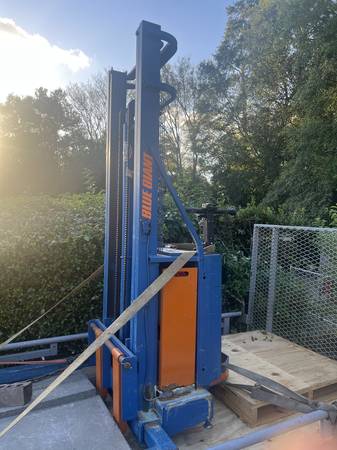 Nice Blue Giant Forklift walker/Stacker,aelectruc,Battery operated Model E110-20, 2000lbs capacity,24 voltage ,1800 hydraulic pressure with built-in battery charger. Worth $10,000.00 only asking...