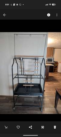 This is a great Bird Playground and it Comes with everything pictured with bowl's also. It will come apart. $100.00 Picture of it without guard. This is very easy to clean. PICK UP Crawford Alabama. I have taken it apart so it will fit in a car.