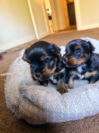 Yorkie puppies need rehoming one male and one female for rehoming. A small rehoming fee applies, will be ready Dec 5. please Text or Call Serious Inquiries Only